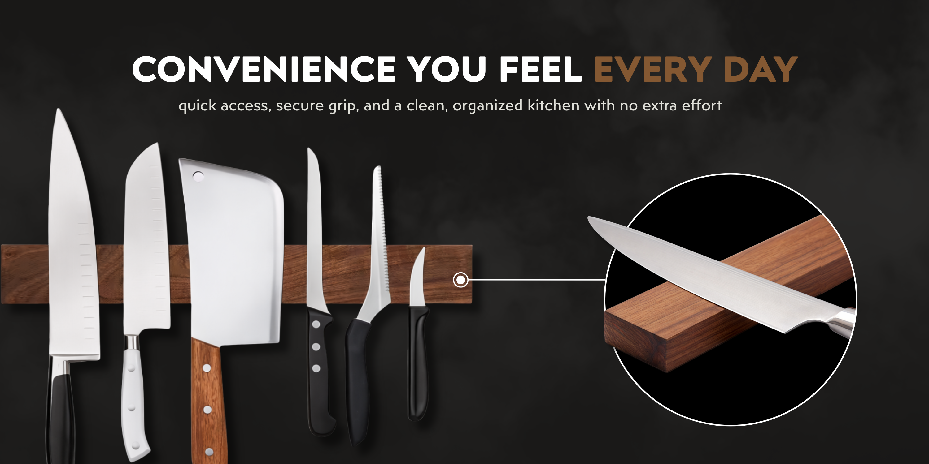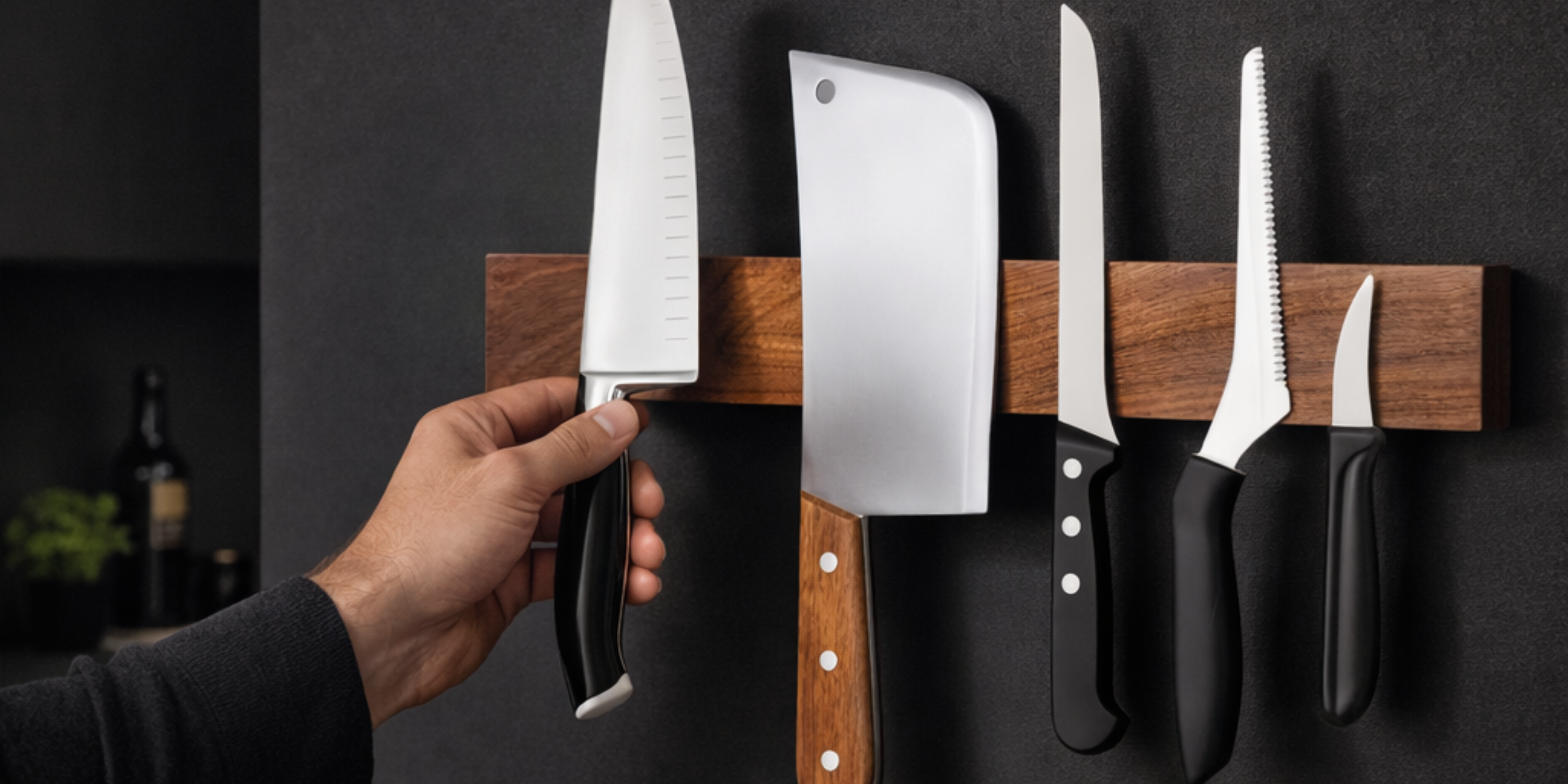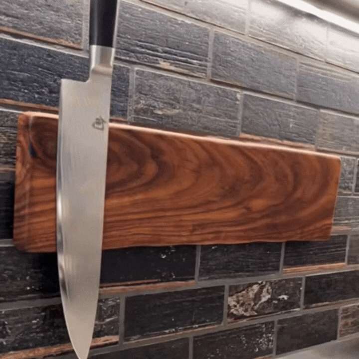 The magnet holds knives securely while allowing safe, effortless access.